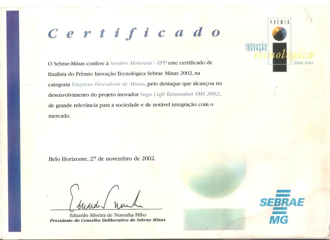 Em 2002, o “SUGACAFÉ TAMANDUÁ” concorreu ao PRÊMIO INOVAÇÃO TECNOLÓGICA do SEBRAE-MINAS, chegando a finalista da categoria Empresa Inovadora.